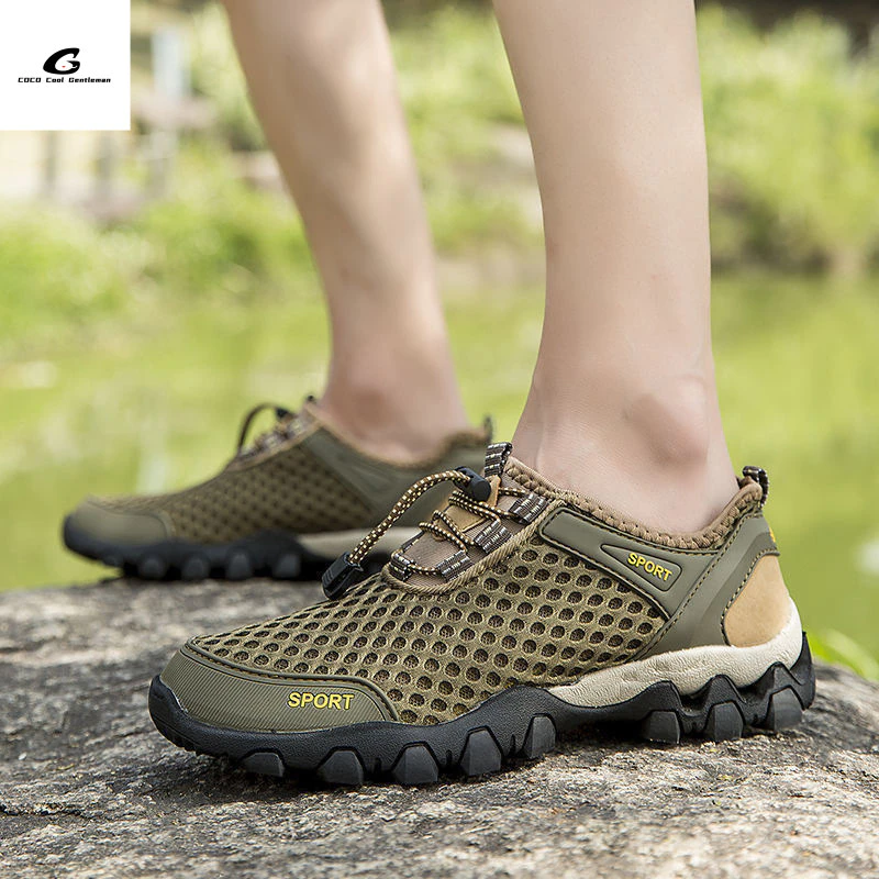 Korean-style casual hiking sandals with a breathable mesh upper and water-resistant design.