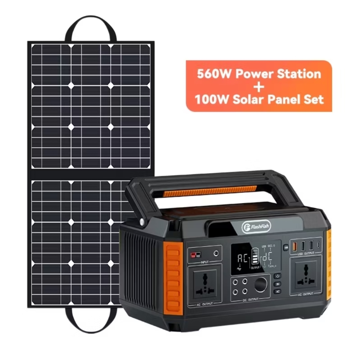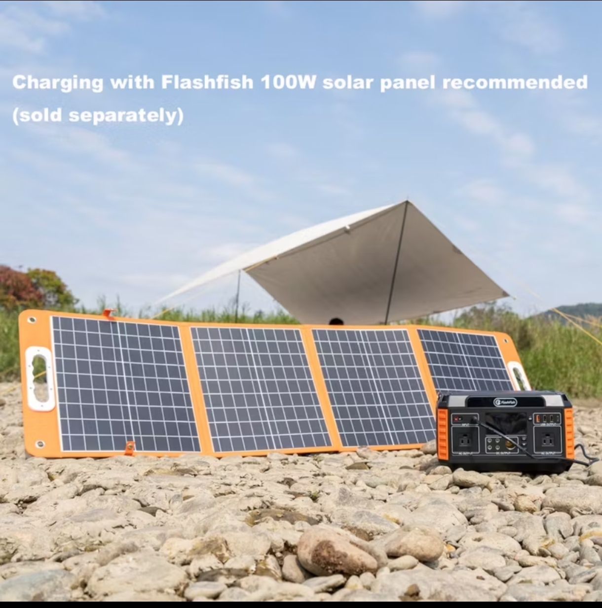 (Recommended: Flashfish 100W 18V Solar Panel – sold separately)