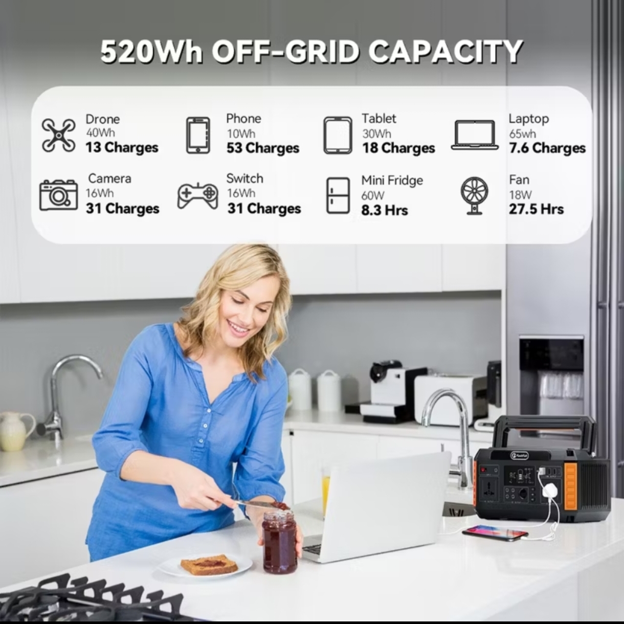 B600, B1200, B600- 120w Solar, B1200 – 120 w Solar, P60(560W/520Wh), A501(500W/540Wh), P60+100W Panel, A501+100W Panel